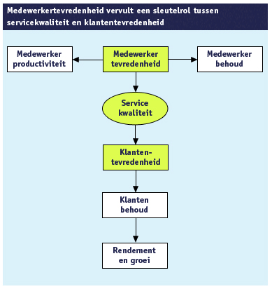 De genoemde posten vertegenwoordigen grote geldbedragen (potentiële kosten). Een investering in medewerkerstevredenheid lijkt dan ook uiterst lucratief. Medewerkers zijn ook meer tevreden wanneer de organisatie een klantgericht beleid voert, zodat klanten goed kunnen worden bediend. Om deze wisselwerking (medewerkerstevredenheid-klantentevredenheid) in gang te zetten is het belangrijk om medewerkers te trainen om klanten tevreden te stellen. Medewerkers moeten inzien dat ontvankelijkheid voor de vragen en klachten van klanten belangrijk is om een bijdrage te leveren aan klantentevredenheid. Training in aspecten van klantentevredenheid kan het klantgerichte gedrag van medewerkers met klantcontact bevorderen. Het besef dient te ontstaan dat door hun inspanningen om klantbehoeften te vervullen de klantentevredenheid wordt vergroot. |