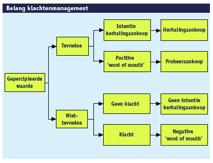 Klantgerichtheid is méér dan een vriendelijke stem aan de telefoon Klantgerichtheid is meer dan alleen een kwaliteit van het ‘front-office’. Het is een integraal onderdeel van alle aspecten waarmee de klant te maken krijgt: producten, diensten, logistieke kwaliteit, service, klachtenbehandeling, facturatie, reclame, etc. Klanten verschillen, bedien ze ook anders Klanten verschillen van elkaar. Ze hebben andere wensen en vragen ook om verschillende zaken. Aan de andere kant vertegenwoordigen klanten ook steeds een andere waarde voor de organisatie. Door klanten te segmenteren op behoeften en op waarde (c.q. life-time value) voor de organisatie wordt het mogelijk op een zakelijke manier gedifferentieerd klanten te bedienen. Om maximale trouw en winstgevendheid te realiseren stellen klantgerichte organisaties de beste waardeproposities op voor klanten met de hoogste life-time value. Tevredenheid is nog geen trouw (Satisfaction Trap) Tevreden klanten zijn nog geen loyale klanten. Sterker nog de meeste klanten die tevreden zijn lopen nog steeds gemakkelijk naar de concurrent. Onderzoeken laten zien dat tussen 65% en 85% van de klanten die niet volkomen tevreden zijn overstapt op een ander product (Reichheld, 1996). Alleen volkomen tevreden of zeer tevreden klanten zijn geneigd tot herhalingsaankopen of tot aanbeveling van de organisatie. Langetermijnperspectief is cruciaal Het volledige potentieel van loyaliteit wordt alleen gerealiseerd als klanten hun gedrag zo veranderen dat ze duurzaam trouw worden. Deze verschuiving vindt alleen plaats als de organisatie een waardepropositie heeft ontwikkeld en gecommuniceerd, die klanten duidelijke langetermijnvoordelen biedt. Klachtenmanagement basis van klantgerichtheid Klachtenmanagement wordt door managers weliswaar niet echt als sexy ervaren, maar het biedt wel een aantal zeer belangrijke assets: het vergroot het klantbewustzijn, maakt manifest wat klanten motiveert of stoort, levert goodwill op en realiseert méér klantenbinding. Bovendien wordt door het lerend vermogen meer efficiency bereikt. Klachtenmanagement is ook nog een dankbare insteek voor cross- en upselling (zie verder www.klachtenmanagement.nl) |